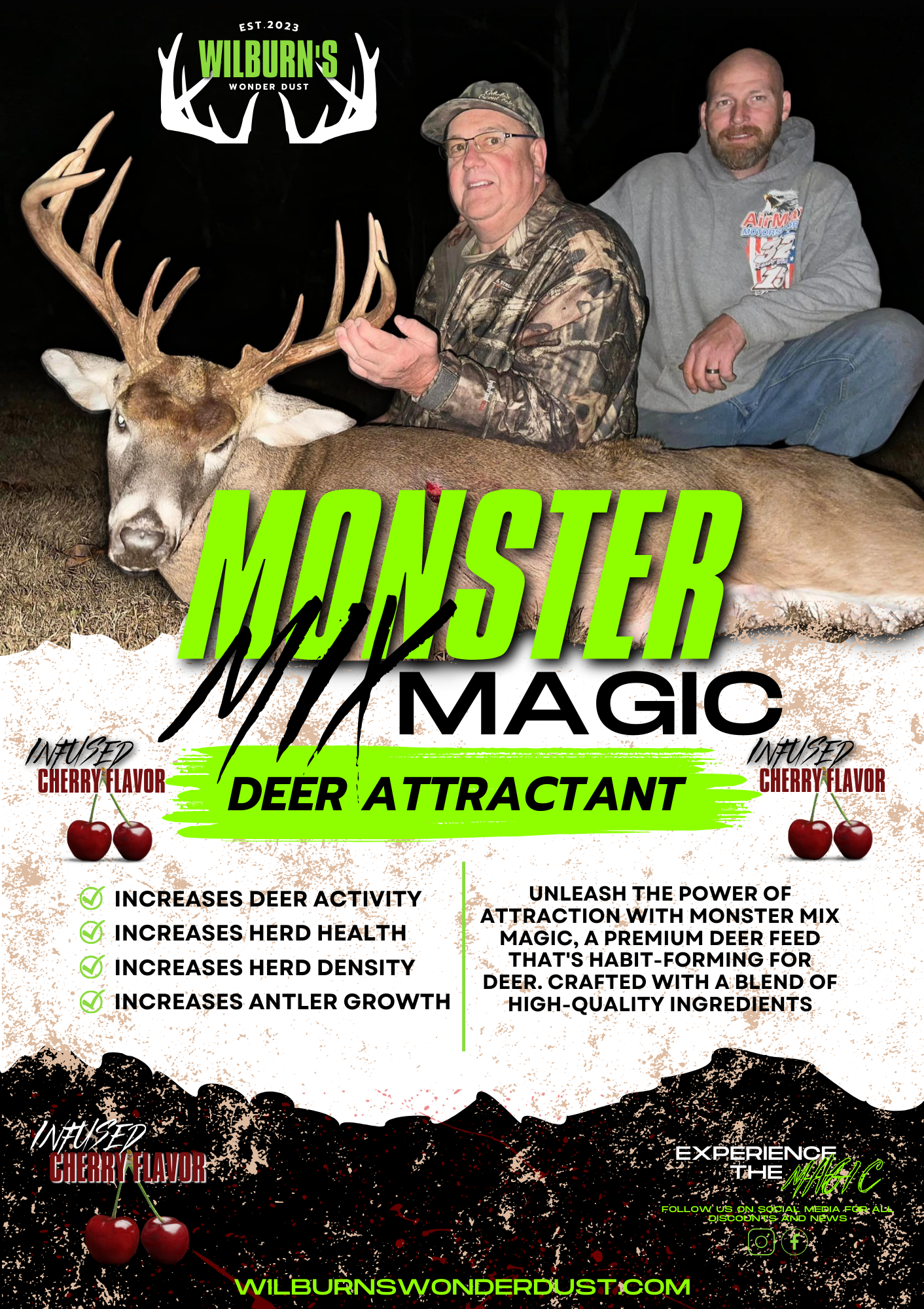 Discover the power of our new Cherry flavor of Monster Mix Magic, a highly effective deer attractant designed to attract and retain deer in your vicinity.